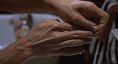 As Brundle’s condition worsens, his body takes on insect-like features. Walas developed animatronic jaw mechanisms to make Goldblum’s teeth fall out realistically, while a series of pus-filled bladders under the skin allowed for disgusting, organic movements. One of the most iconic scenes—where Brundle peels off his fingernails—was achieved using gelatin-based prosthetics that allowed for an unsettlingly realistic effect.